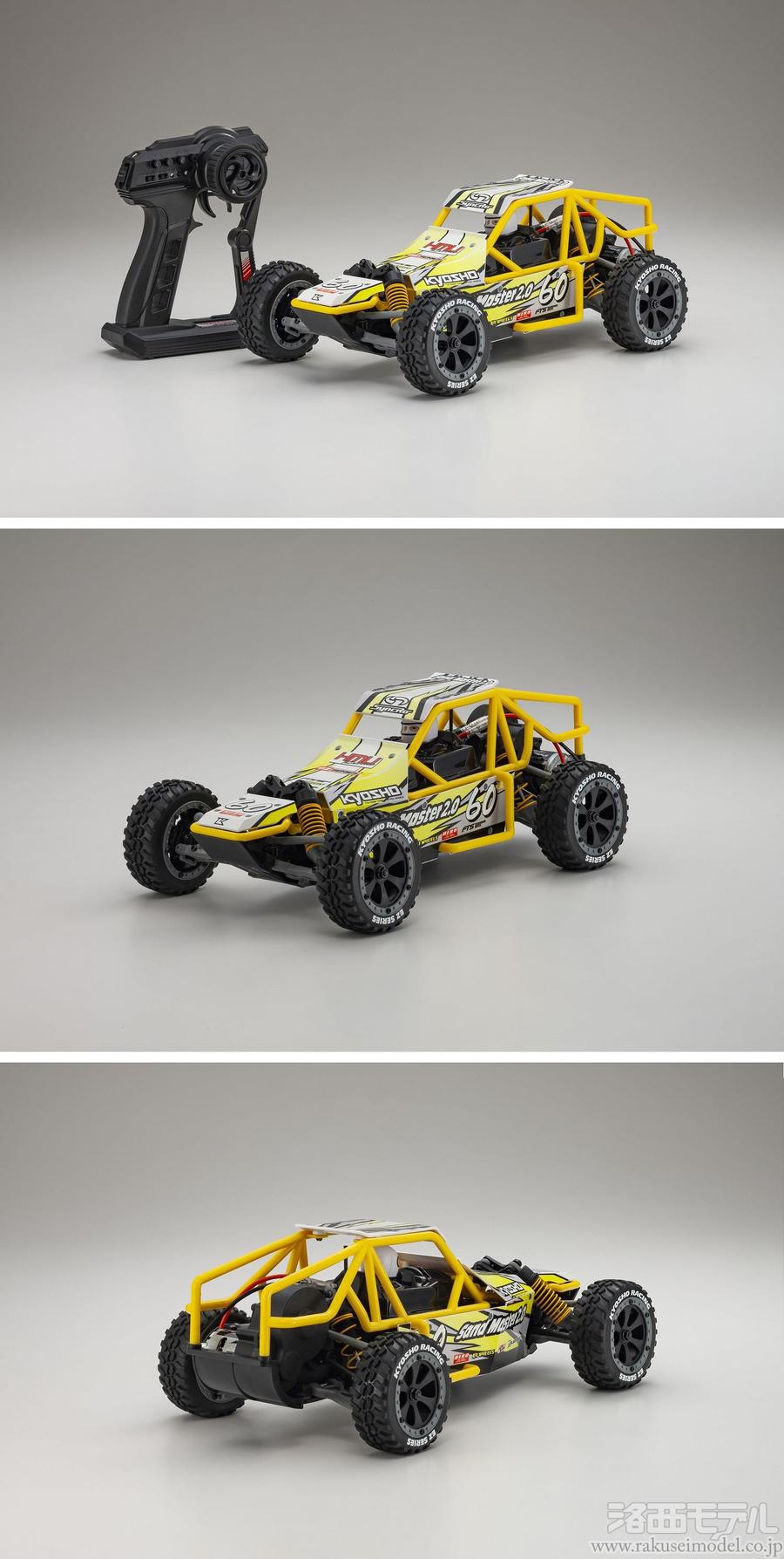 オンロードからオフロードまで思いのままに軽快な走行を楽しみたい、そんな願いを叶えるのがEZシリーズ「サンドマスター2.0」です。操縦しやすいパワー感とハンドリング性能を合わせ持ち、送信機はバンド管理不要の2.4GHz仕様だから複数台での走行も可能。また、部品点数を少なくすることでメンテナンス性にも優れており、付属のメンテナンス工具(L字レンチと十字レンチ)での車体整備や組立分解も簡単にできる構造となっている。しかも、デカール貼り込み済みボディと組立完成済みシャシーが揃ったレディセットなので、これから電動R/Cバギーを始めてみたいというエントリーモデルとしてだけではなく、気軽に2WDバギーを楽しみたいというベテランにもお勧めしたい仕様となっています。