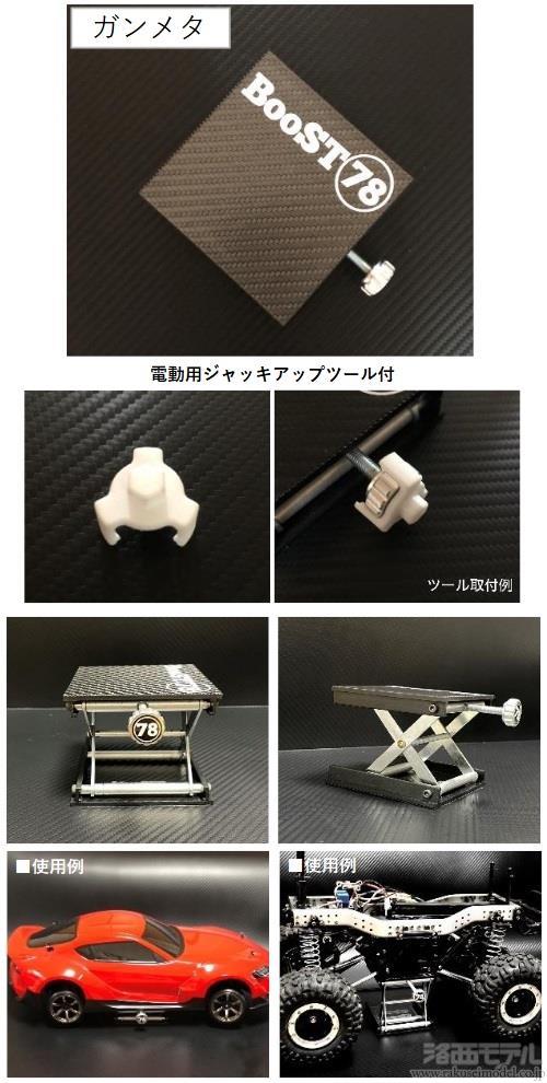高さは27mm〜85mmまで調整できるので、ドリフトカーからクローラーまで幅広く色々なRCをジャッキアップすることができ、