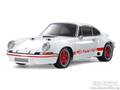 1964年の誕生以来、長い歴史を誇るポルシェ911の中でも、伝説の1台と言われているのが「ナナサンカレラ」とも呼ばれるカレラ RS 2.7です。ヨーロッパGT選手権参戦のために開発されたこのモデルは1972年のパリサロンでデビュー。水平対向6気筒エンジンの排気量を2.4から2.7にアップして出力を向上。さらに、リヤのダックテールに代表される空力の改良や軽量化、前後で幅の異なるタイヤの装着なども実現。さらに純レース仕様のカレラRSR(2.8)は、1973年のデイトナ24時間、セブリング12時間、タルガ・フローリオで優勝し、高性能を実証したのです。特徴的なダックテールや張り出したフェンダーなど個性的なフォルムをリアルに再現したボディはポリカーボネート製の一体成形パーツ。本体をホワイト、ウインドウをスモークで塗り分け、ホイールアーチのカット加工やボディマウント用の穴開け加工も施しました。
