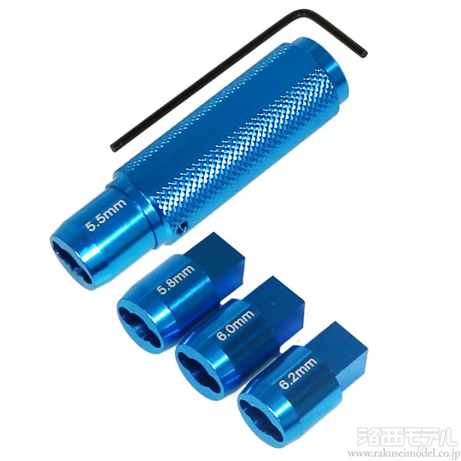 サイズの異なる4つのビットが(5.5, 5.8, 6.0, 6.2mm)同梱されており、お好みのサイズのビットをハンドルへ取付けイモネジで固定し使用します。