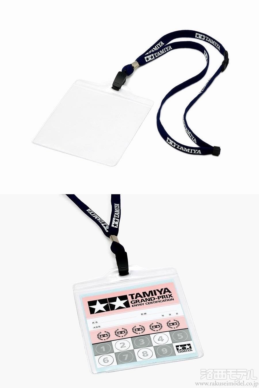 タミヤのミニ四駆公認競技会などで選手に配られる「エントリーカード」がピッタリ収まる大判カードケースが付いたネックストラップです。