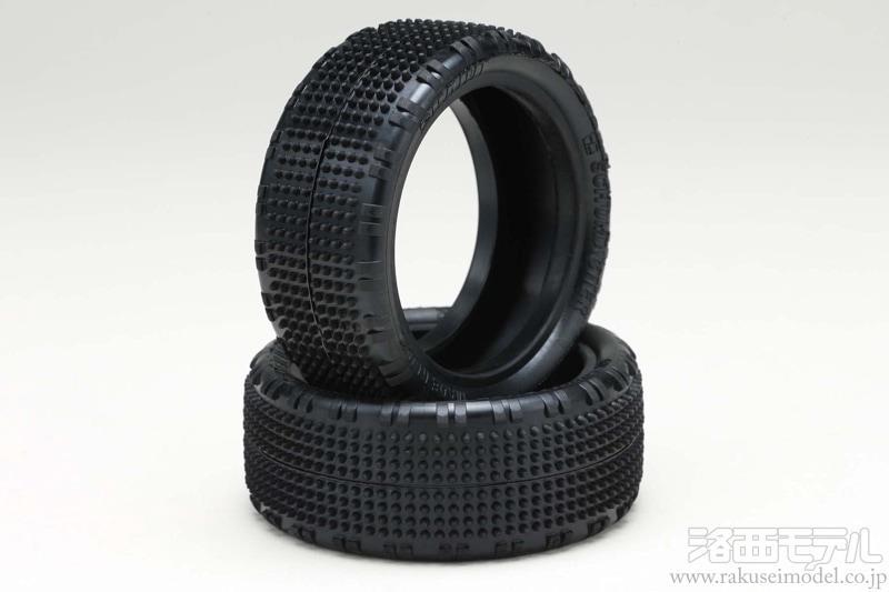 特にカーペットや人工芝などのハイグリップ路面に適した特性で、ショルダーのブロックによるコーナーでの引っ掛かり感を低減しつつ、テーパーピンで安定感の高いニュートラルなステアリング特性を引き出します。