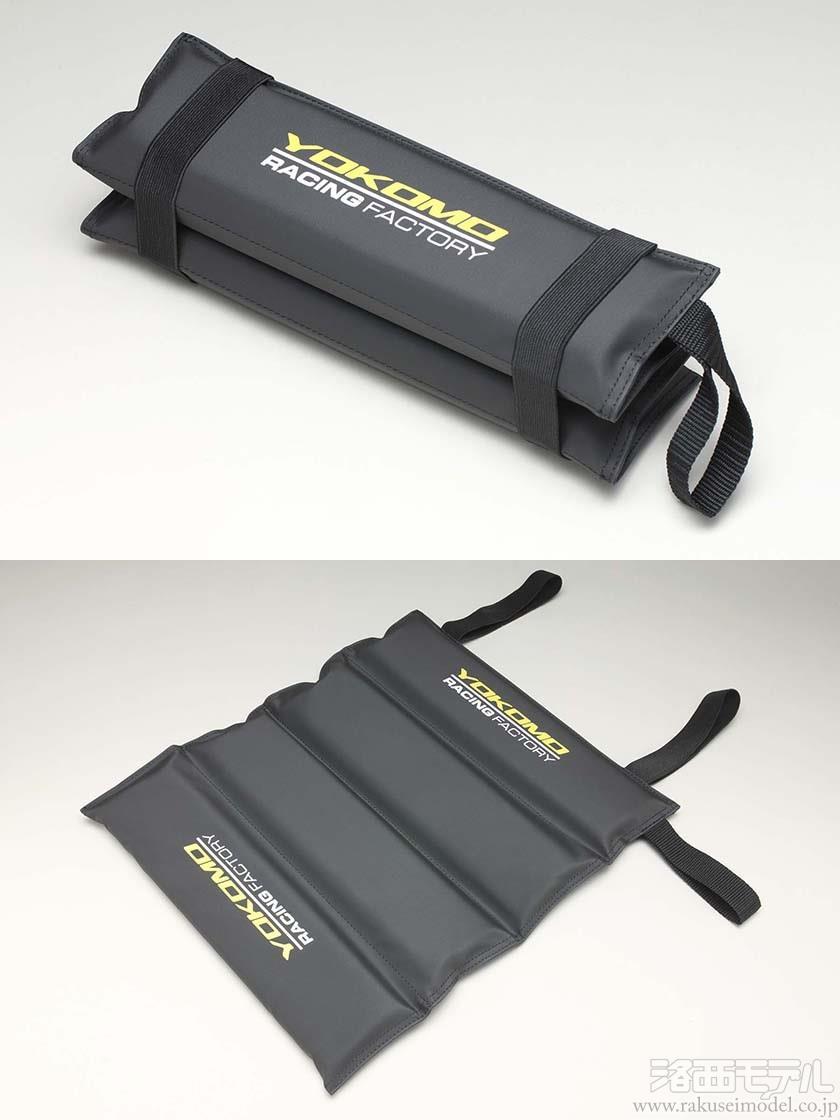 4 つ折りになっているので収納もしやすく、もちろんヨコモのレーシングファクトリーロゴもプリントされて雰囲気を高めます。