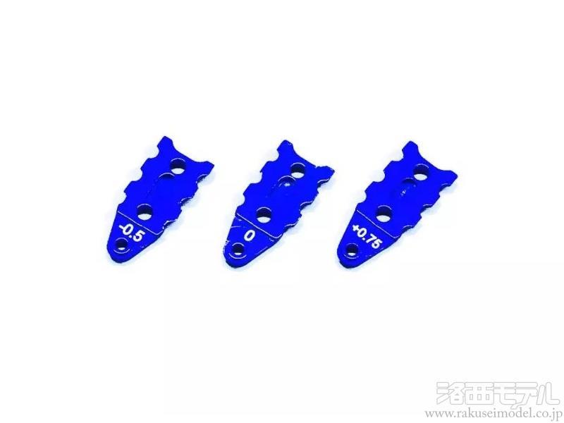リヤサスプレートと接触するポイントが異なる3種類のホルダーを使い分けることでロールの特性が変えられるセッティングパーツ。