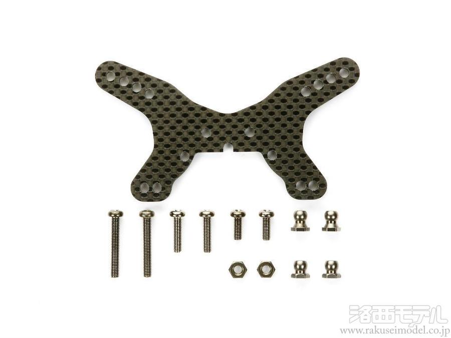 標準装備のM4部品に換えて使用。3.5mm厚カーボン製ダンパーステーはねじれやたわみがほとんどなく、ダンパーの作動効果を高めます。